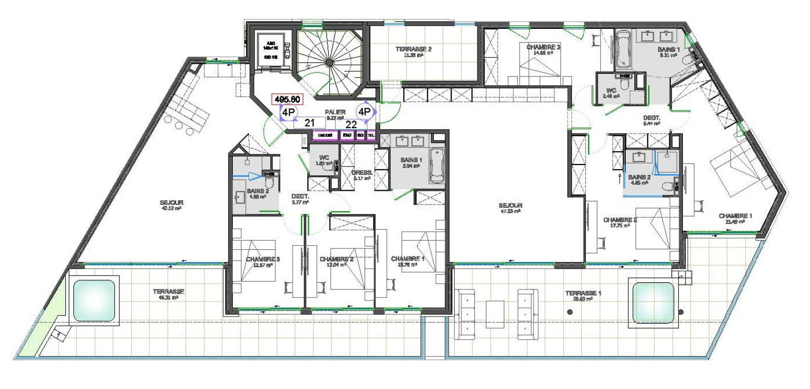 Proche village. Dans un environnement résidentiel, à seulement quelques minutes de Monaco, 4 pièces situé au deuxième étage. L'appartement offre une surface habitable de 107,11 m² et se compose d’un séjour lumineux donnant sur une spacieuse terrasse de 47,89 m², d’une cuisine entièrement équipée, de trois chambres confortables et de deux salle de bains avec WC. WC indépendant. Parking inclus
