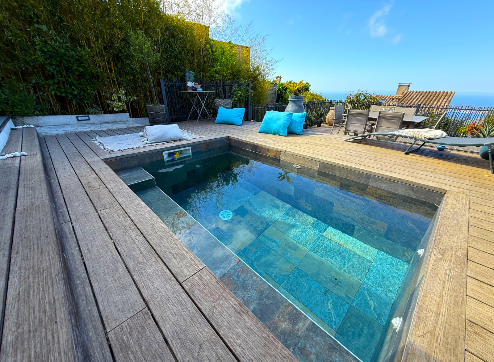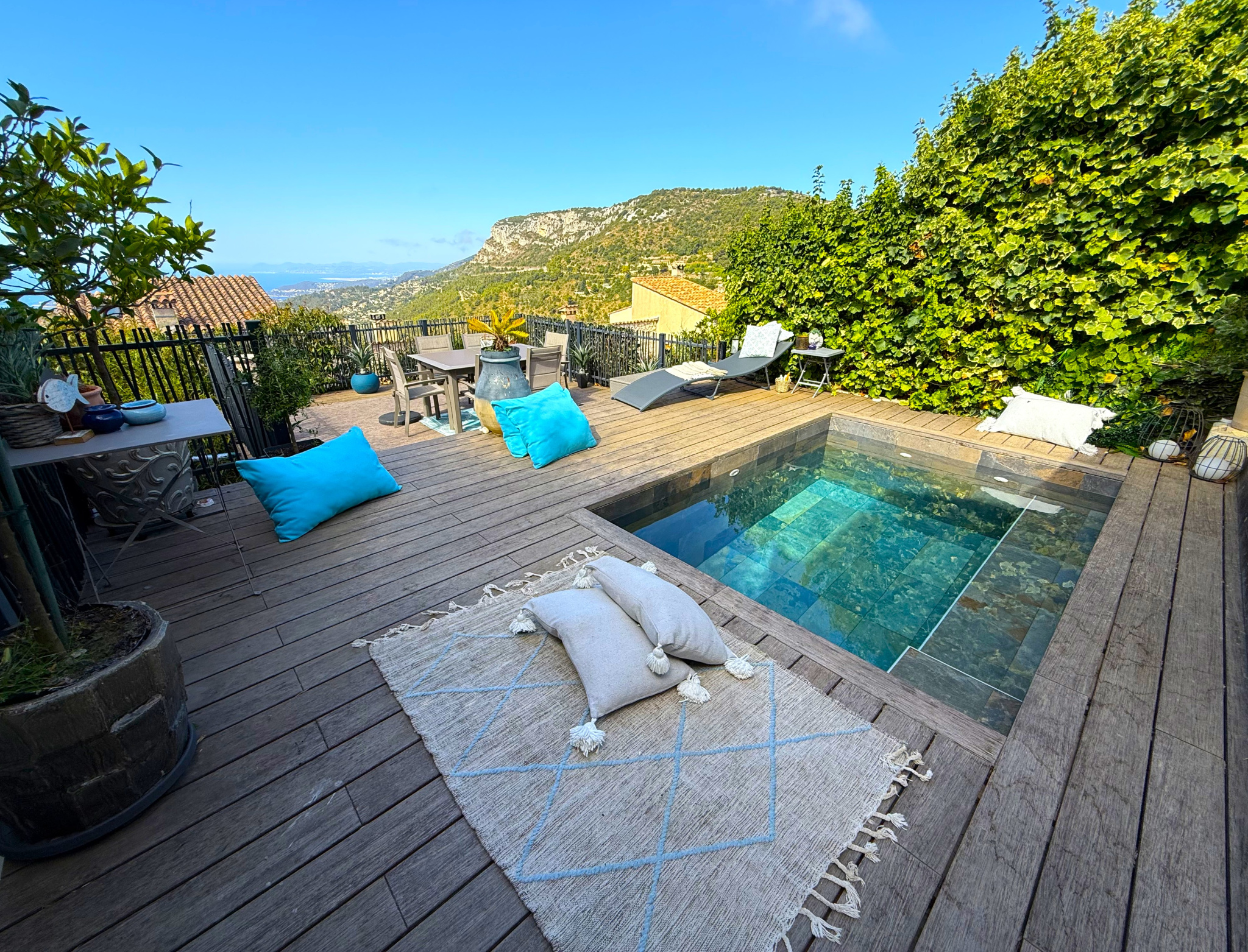 dans le domaine des hauts de monte carlo securisé maison de 110 m² 3 pieces ,piscine ; vue sur villefranche cap ferrat ,sud ouest ,proche village de la turbie ,10 minutes monaco 15 minutes aeroport