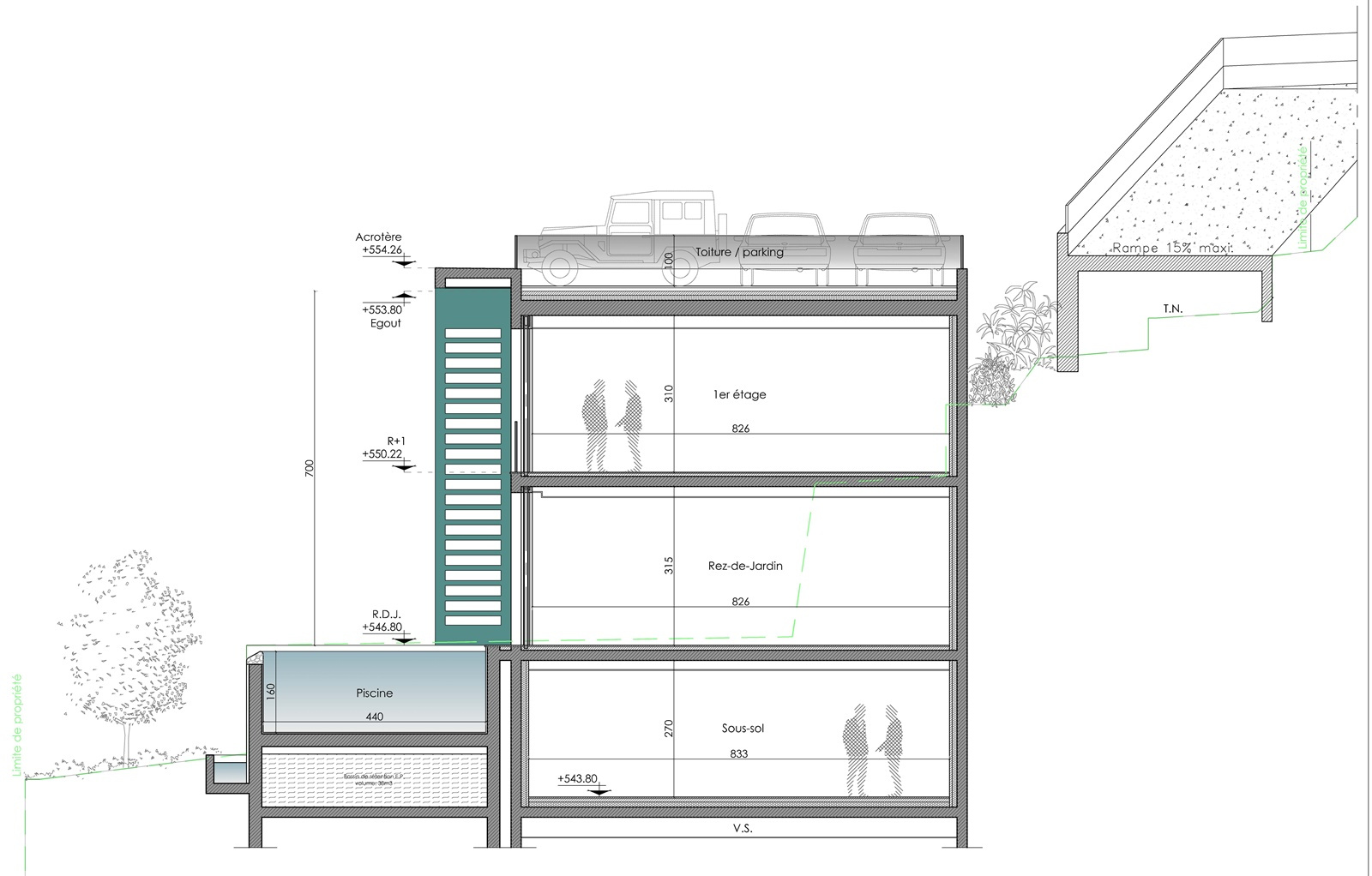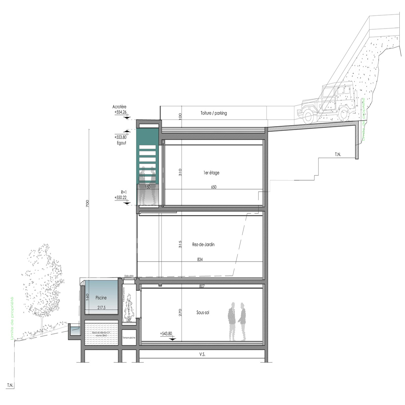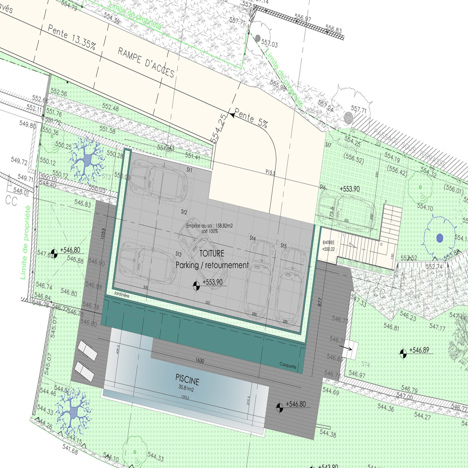 La Turbie - Villa contemporaine sur trois niveaux de 350 m² - 4 chambres - Piscine - Vue mer - Exposition Sud - Terrain de 1 300 m² - 6 parkings