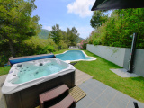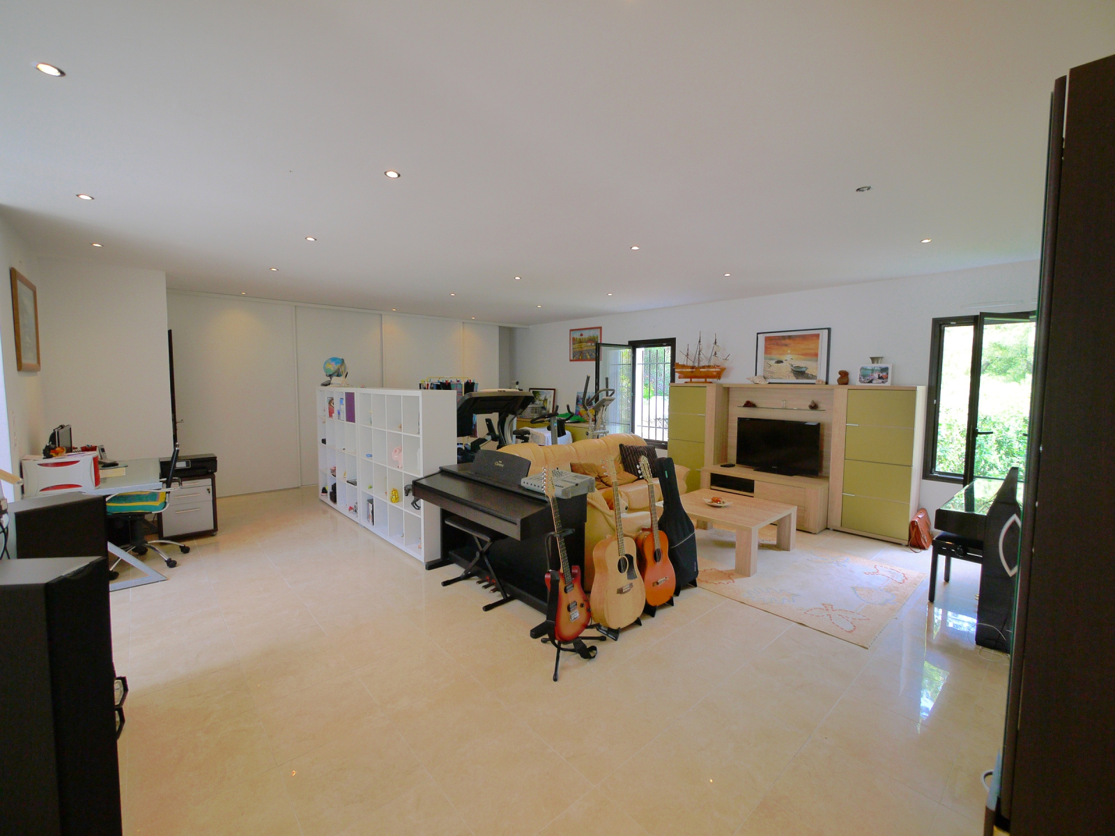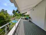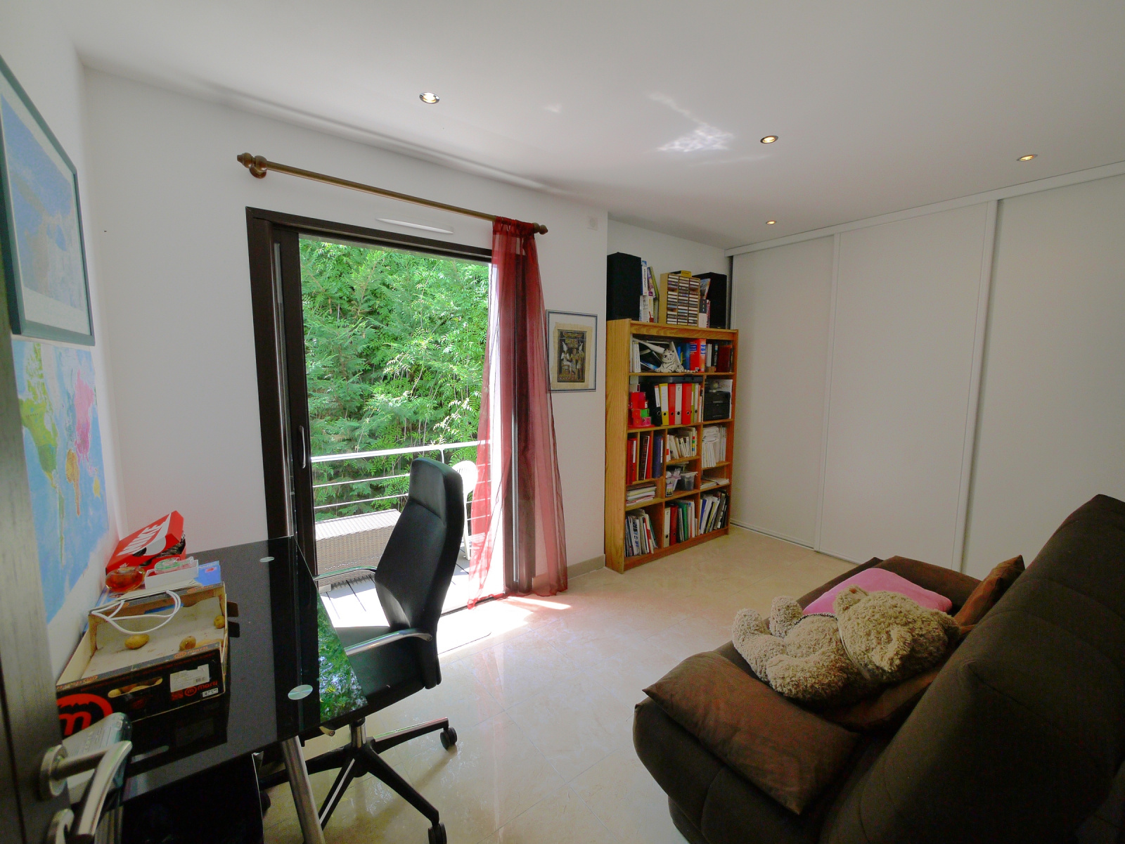 Villa contemporaine 6 pièces, proche de Monaco, 200 m² sur deux niveaux et sur un terrain de 1200 m², piscine, jacuzzi, double parking, toit terrasse de 80 m², cabanon, cuisine d'été, vue dégagée. Au premier niveau : grand séjour/salle à manger avec terrasse, cuisine américaine, une chambre/bureau avec balcon, salle d'eau, WC. Au rez-de-jardin : 3 chambres, une salle de bain, WC et un deuxième grand séjour.