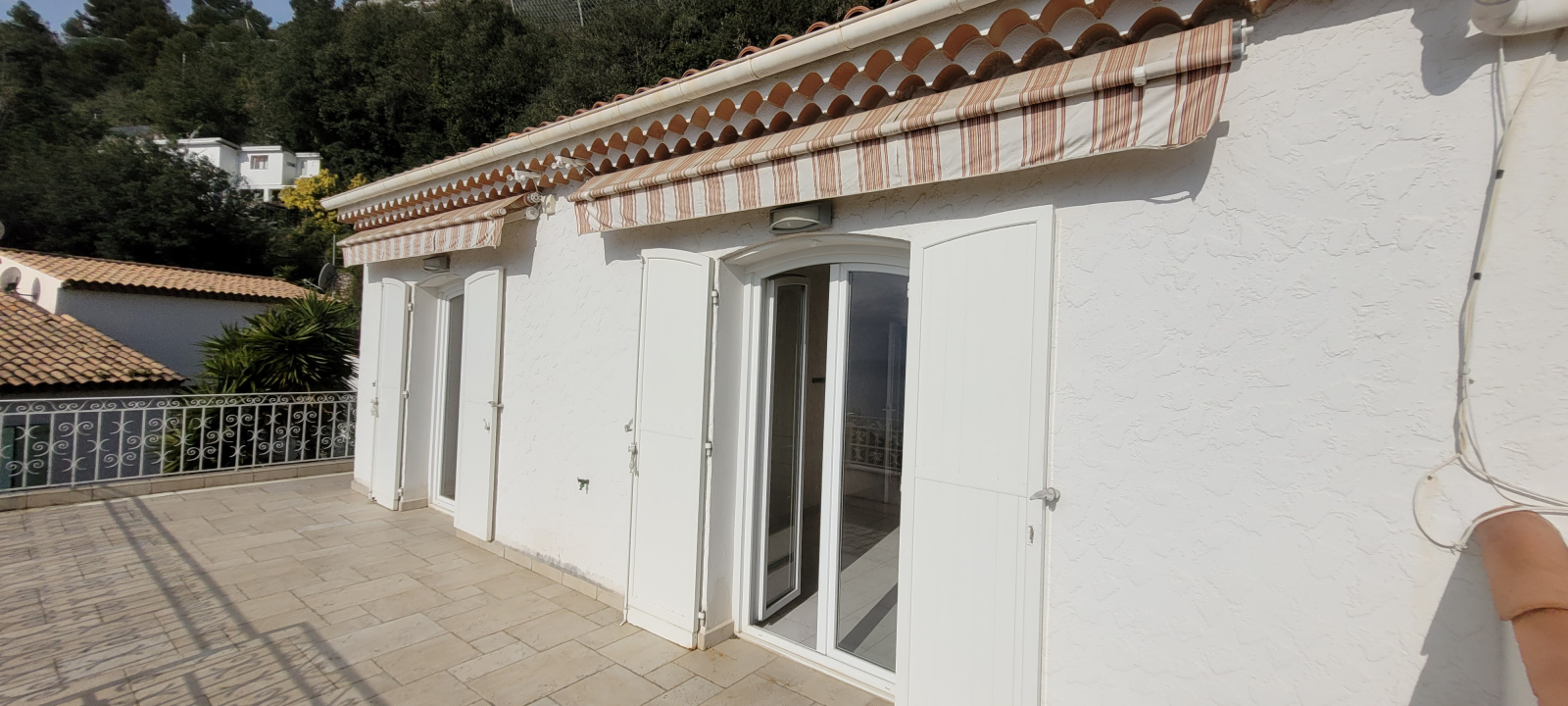 Proche centre du village de La Turbie, villa individuelle d'environ 240 m² avec un jardin d'environ 744 m². Grand salon, salle à manger avec cuisine ouverte et un WC. A l'étage il y a 3 chambres et deux salles de bains avec une terrasse d'environ 36 m². Appartement indépendant de 60 m². Vue me. Possibilté piscine