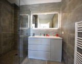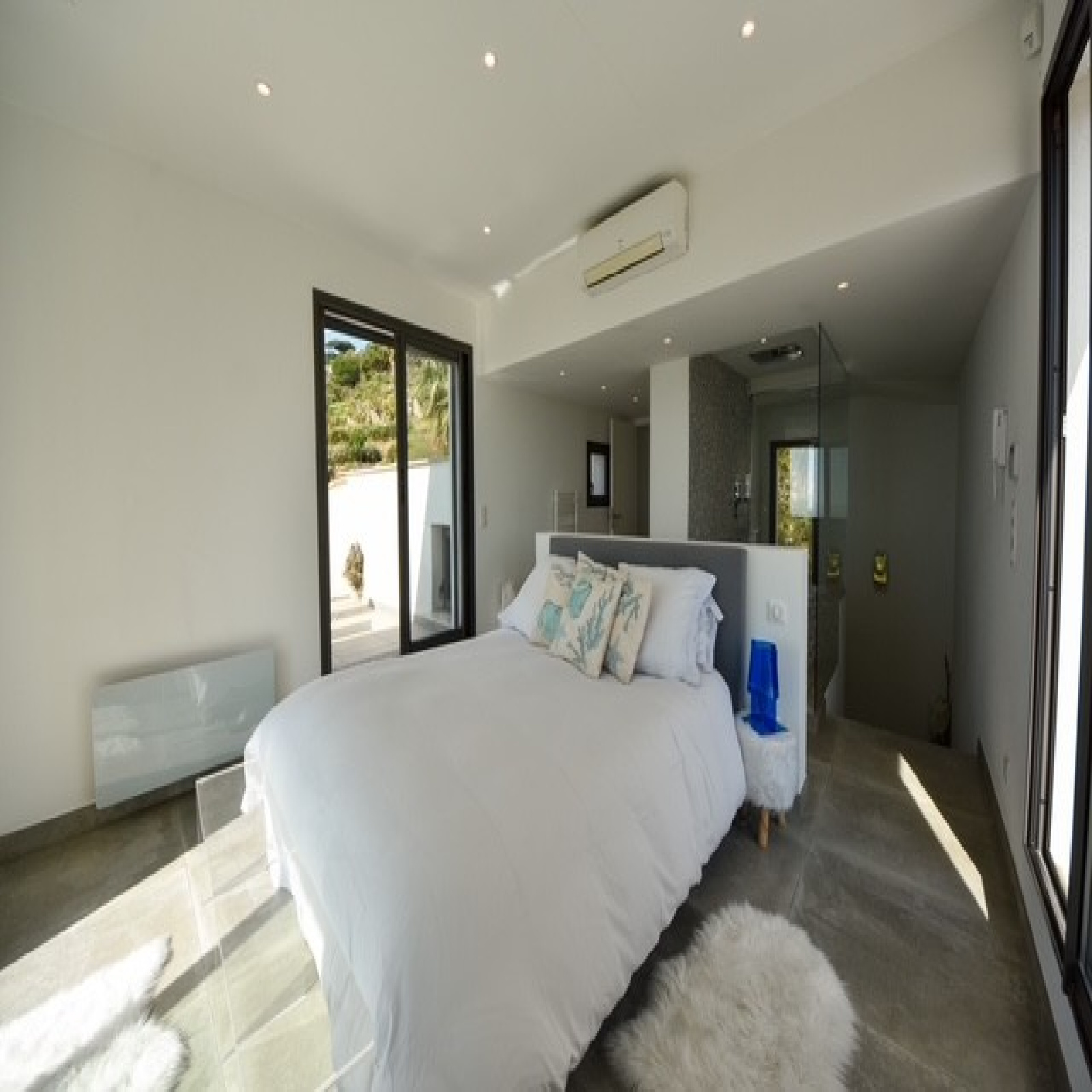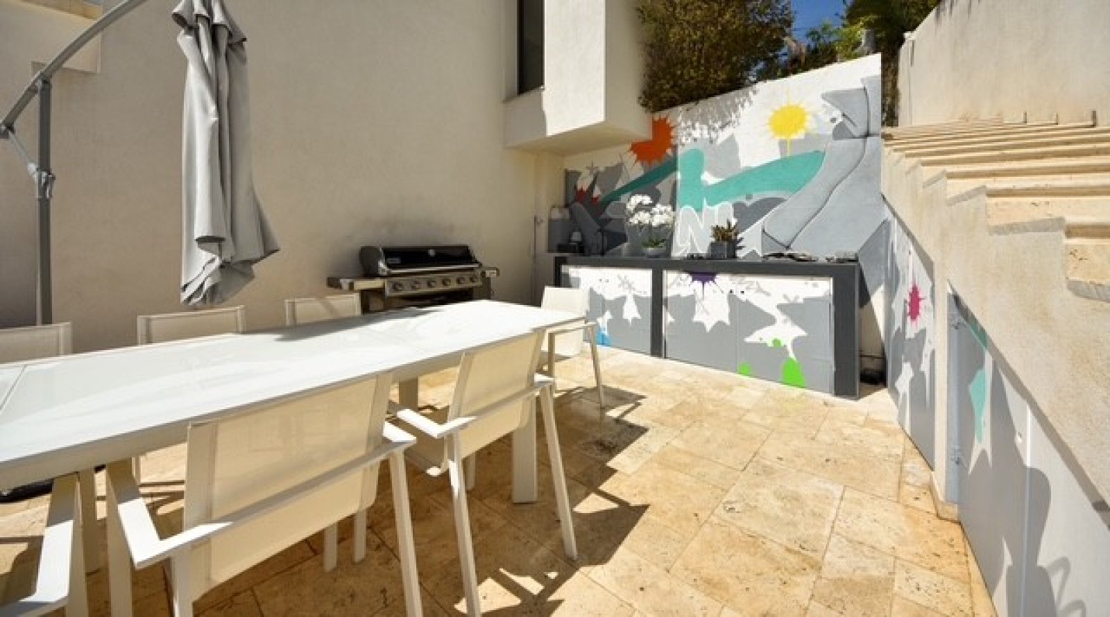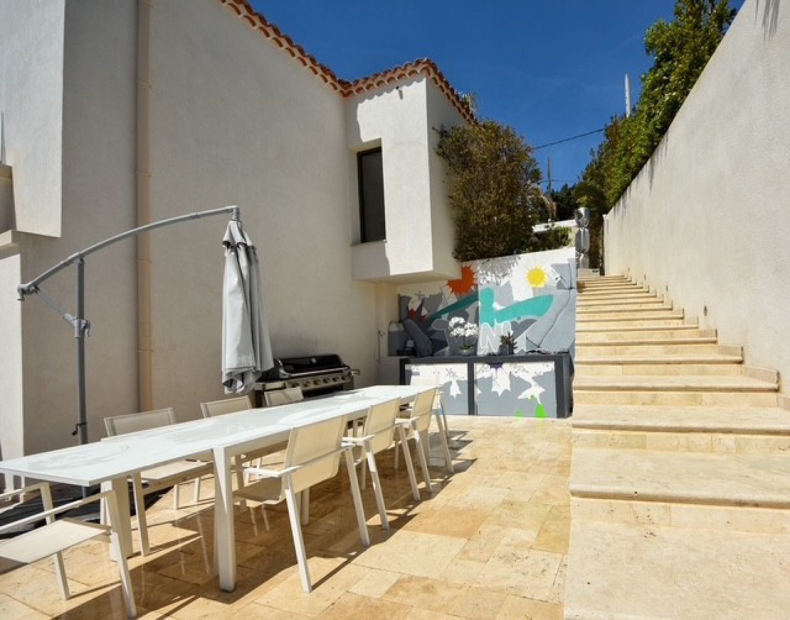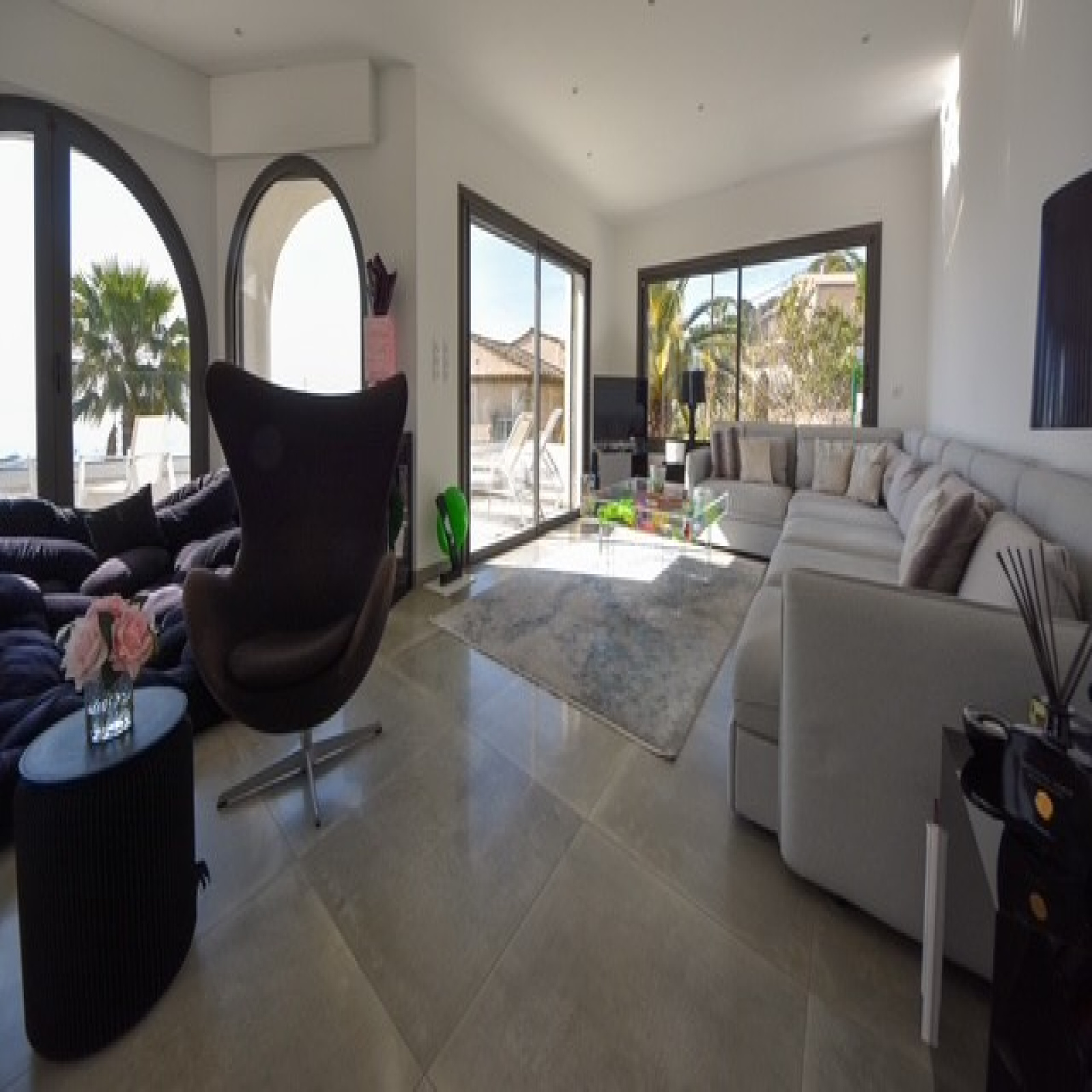 Magnifique villa entre Cannes et Antibes, vue panoramique exceptionnelle sur Cap d'Antibes et Cannes. 5 chambres. 5 salles de douche. Très grand living, cuisine ouverte entièrement équipée. Piscine, cuisine d'été. Large terrasse dominant la mer. Au calme, ensoleillé, proximité de la mer et des commerces, quartier résidentiel de Golfe Juan.