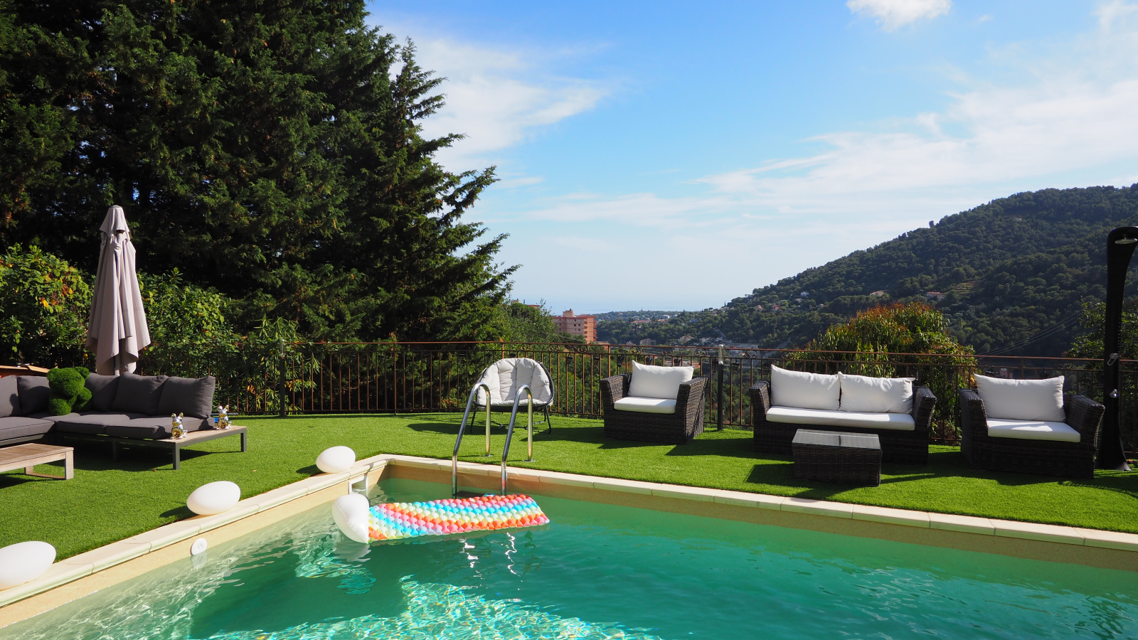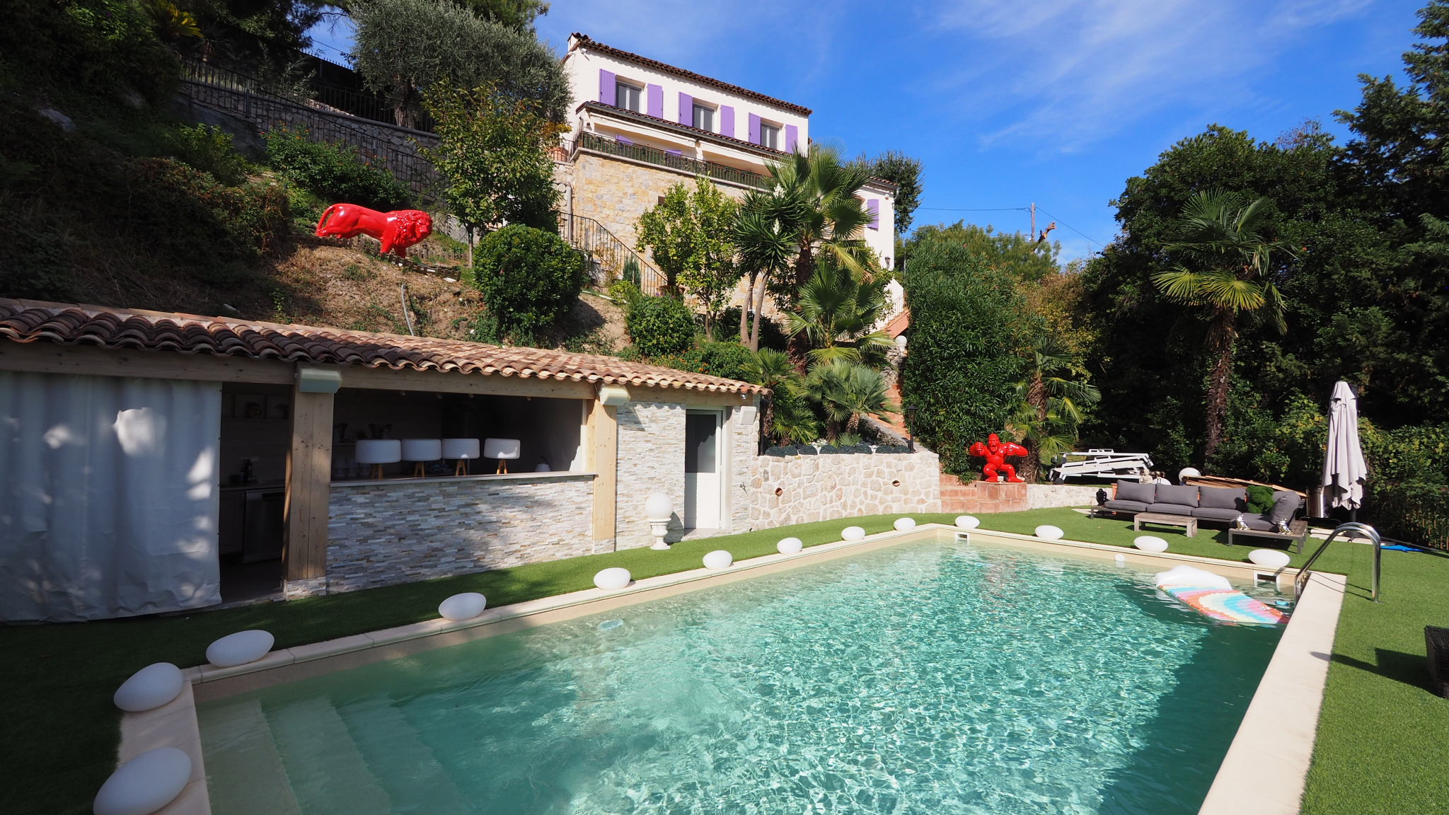 Magnifique villa sur les hauteurs de Menton 300 m² environ, terrain de 1859 m², piscine, entièrement rénovée avec goût ,vue mer, calme, ensolleillée. Très belles prestations, pool house avec cuisine d'été, baignoire balneo, salle de cinéma haut de gamme, cave à vins, salle de sport, pool house avec cuisine équipée. La villa est équipée du chauffage au sol, alarme, vidéo surveillance, porte blindée. Plusieurs stationnements. Un véritable havre de paix à voir absolument !