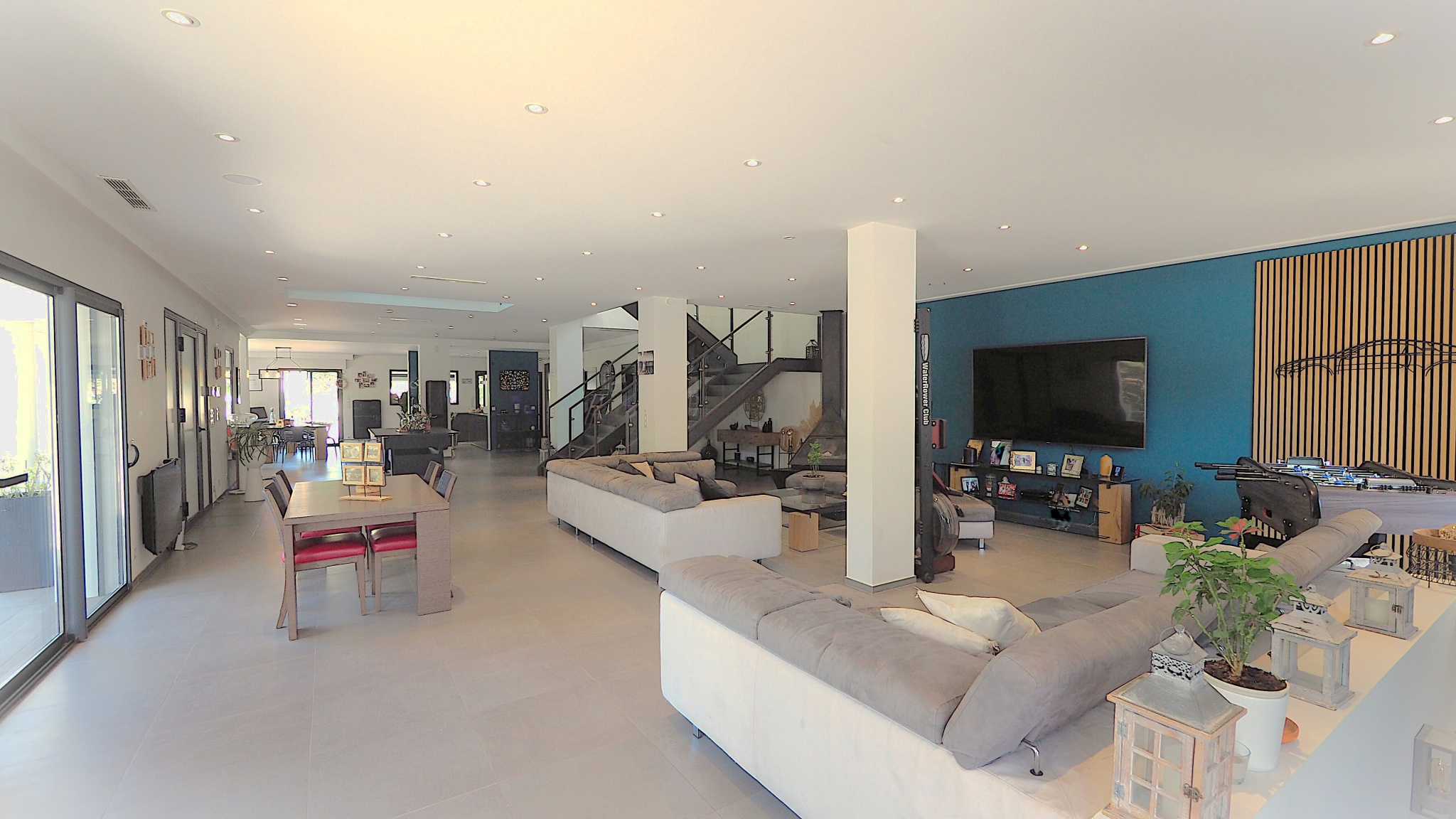 Magnifique villa de 353 m² habitables, située à Saint Martin de Peille, accès très facile, vue dégagée montagne. Au rez-de-chaussée : vaste salon, séjour, cuisine ouverte équipée pour un total de 161 m², grande buanderie, placards, WC invités. Accès au premier étage grâce à un double et large escalier ; étage composé d'une suite parentale avec dressing, salle de bain, douche et WC, de deux chambres en suite avec dressing, salle d'eau et WC et d'une quatrième chambre avec salle d'eau et WC. Les quatre chambres disposent d'un balcon ou d'une terrasse. Alarme, porte blindée, panneaux solaires. Au rez-de-jardin : appartement indépendant de 40 m² avec séjour, cuisine, coin nuit, salle d'eau, WC, cellier. Jardin paysager et clôturé de 2 929 m² avec arrosage automatique, terrain de pétanque, piscine chauffée, WC extérieur. Garage de 85 m². 10 places de stationnement.