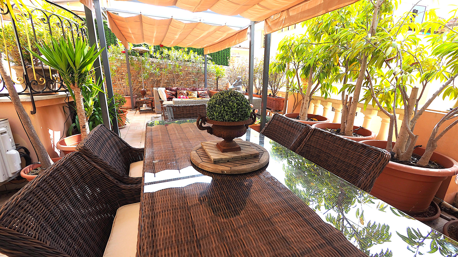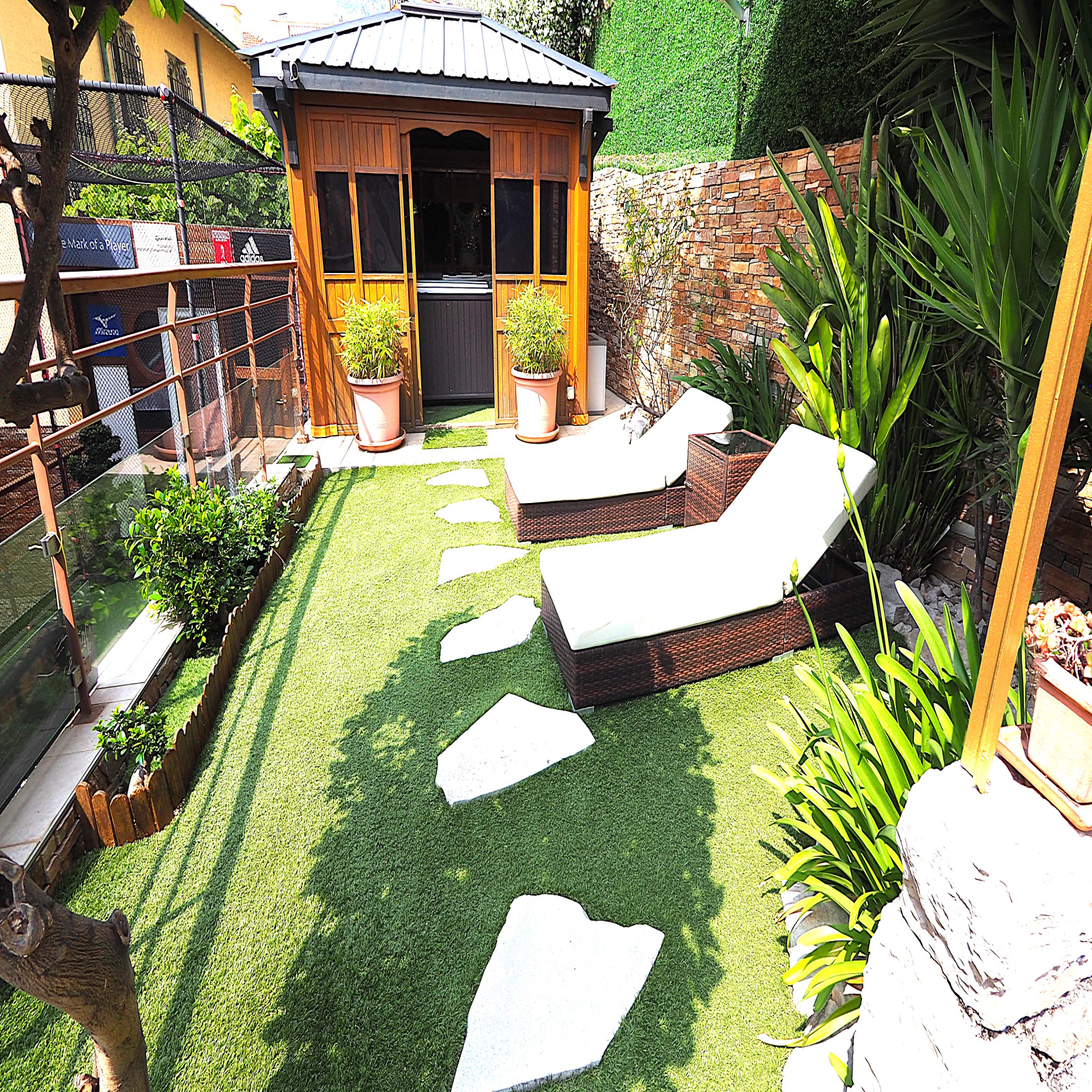 – Plusieurs terrasses, jardin, spa jacuzzi, pratice de golf